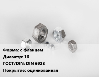 Гайка с фланцем D=16 DIN 6923 оцинкованная