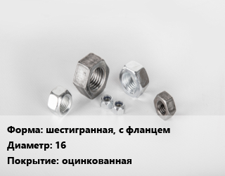 Гайка шестигранная, с фланцем D=16 оцинкованная