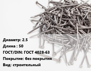 Гвоздь 2.5х50 ГОСТ: ГОСТ 4028-63 без покрытия строительный