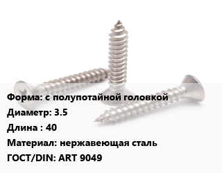 Саморез с полупотайной головкой D=3.5 L=40 нержавеющая сталь ГОСТ: ART 9049