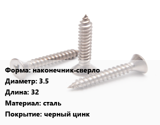 Саморез наконечник-сверло D=3.5 L=32 сталь черный цинк