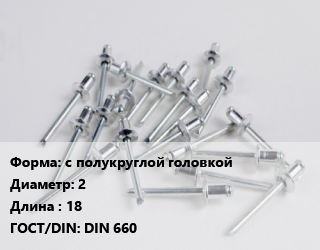 Заклепка с полукруглой головкой 2х18 ГОСТ: DIN 660