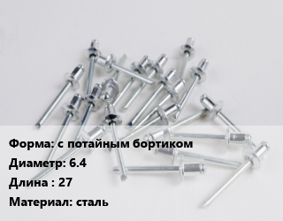 Заклепка с потайным бортиком 6.4х27 сталь, упаковка 250 шт цена от 1 633 Тг / шт, где купить, условия доставки в Семее и Абайской области