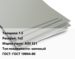 Лист нержавеющий 1.5 1х2 Сталь: AISI 321 Тип:матовый ГОСТ 19904-90