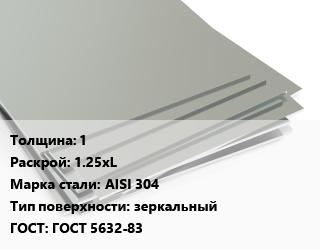 Лист нержавеющий 1 1.25хL Сталь: AISI 304 Тип:зеркальный ГОСТ 5632-83, х/к, в бумаге,в пленке цена от 235 285 Тг / т, где купить, условия доставки в Семее и Абайской области