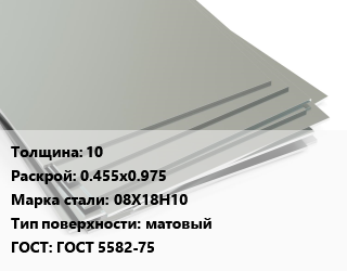 Лист нержавеющий 10 0.455х0.975 Сталь: 08Х18Н10 Тип:матовый ГОСТ 5582-75
